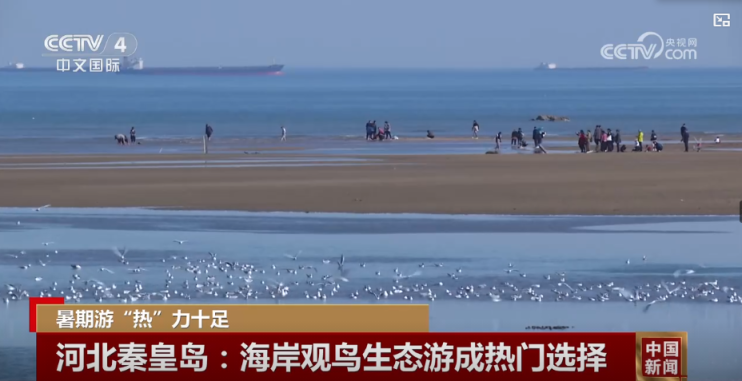 随着生态环境的日益向好,去户外观鸟也成为人们假期旅行的热门选择。在河北秦皇岛北戴河的大潮坪湿地,众多游客相聚美丽海岸,观鸟、赏景、与大自然亲密接触,共享生机盎然的生态之美。